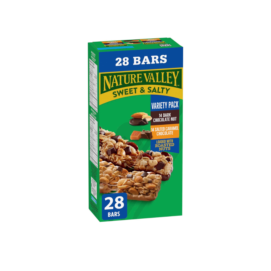 NATURE VALLEY - VALUE PACK - Dark Chocolate Nut and Salted Caramel Chocolate Chewy Nut Sweet and Salty Granola Bars Variety Pack, Pack of 28 Bars